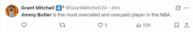 勇士球迷:吉米-巴特勒是 NBA 普遍认为言过其实的球员,而且得薪酬过高。